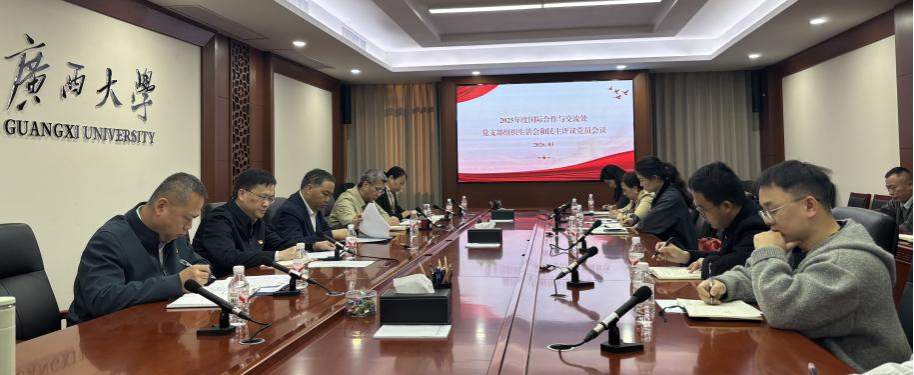 3月11日下午,国际合作与交流处党支部在君武楼第一会议室召开2025年度组织生活会暨民主评议党员大会。会议由党支部书记廖文丹主持,支部全体党员参加,校长肖建庄以普通党员身份出席,机关党委郭昌明书记到会指导。